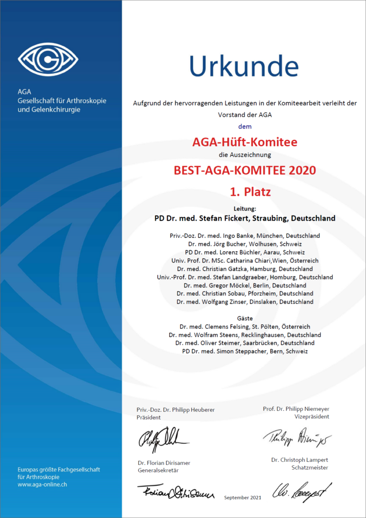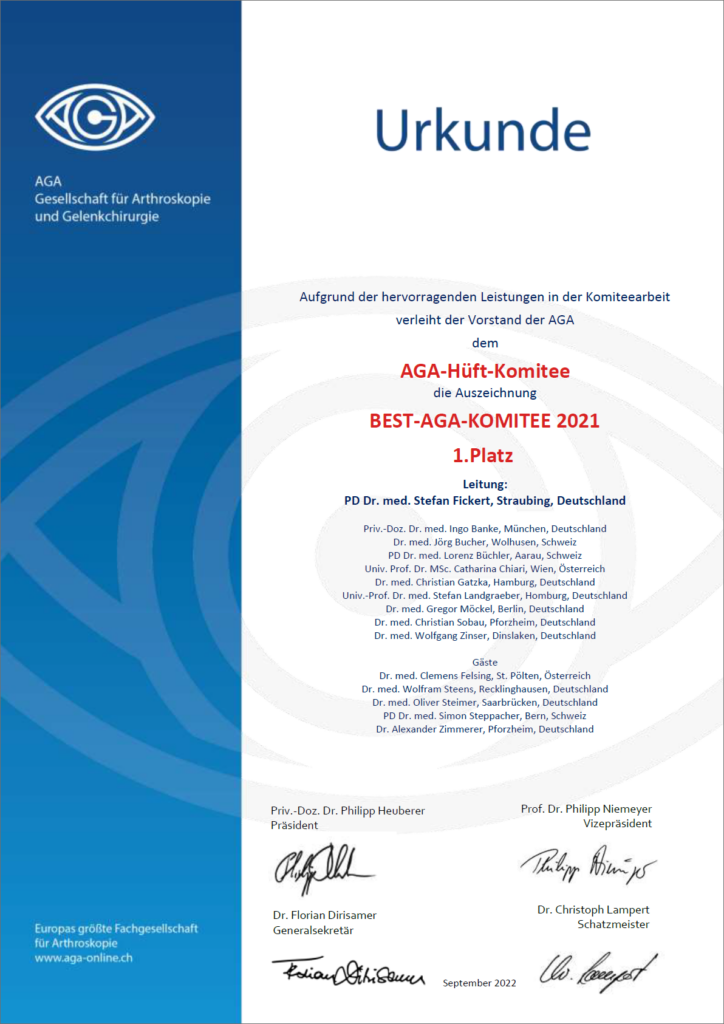 Seit 2014 AGA – Hüft-Komitee-stellv. Vorsitzender