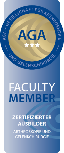 Das Zertifikat „AGA Faculty Member“ wird an Fachärzte verliehen, die sich durch ihre Lehrtätigkeit und ihr Engagement in der Ausbildung neuer Generationen von Arthroskopeuren auszeichnen.